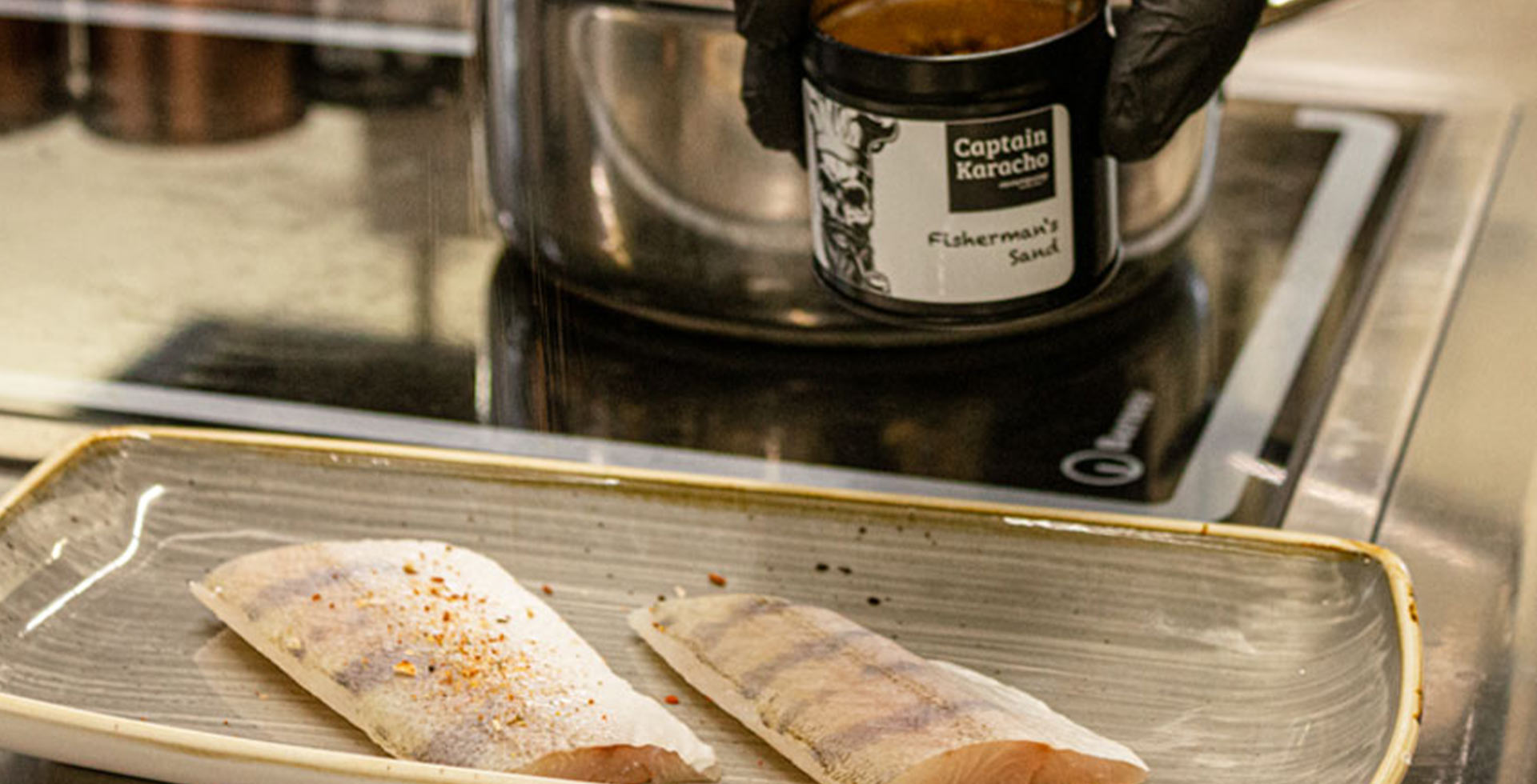 Wir gingen weit über das rein Digitale hinaus und starteten direkt beim Kern der Identität: dem Branding. Zuerst entwarfen wir das markante Captain Karacho Logo – ein Totenkopf mit Kochmütze und Pfeife –, das die Brücke zwischen rauer Küsten-Piraterie und handwerklichem Stolz schlägt. Darauf basierend entwickelten wir ein ganzheitliches Corporate Design, das konsequent auf harten Kontrasten in Schwarz-Weiß beruht. Ein entscheidender Hebel der Lösung war die bewusste Abkehr von klinischen Produktfotos.