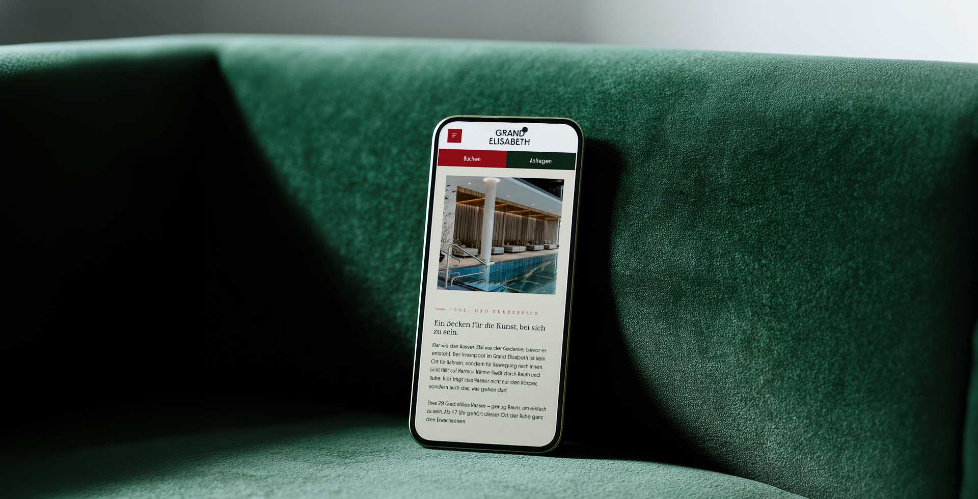 Das Grand Elisabeth wurde digital als die Adresse für modernen Individual-Luxus im Salzkammergut etabliert. Die Website ist weit mehr als eine Info-Seite; sie ist ein Manifest der Freiheit. Sie hebt sich radikal vom Wettbewerb ab und zieht genau die Zielgruppe an, die den kaiserlichen Kontext schätzt, aber keine Lust auf steife Etikette hat. Das Ergebnis ist eine hohe Marken-Identifikation und eine überdurchschnittliche Buchungsperformance durch ein Design, das Mut zur Lücke und zum Kontrast beweist.